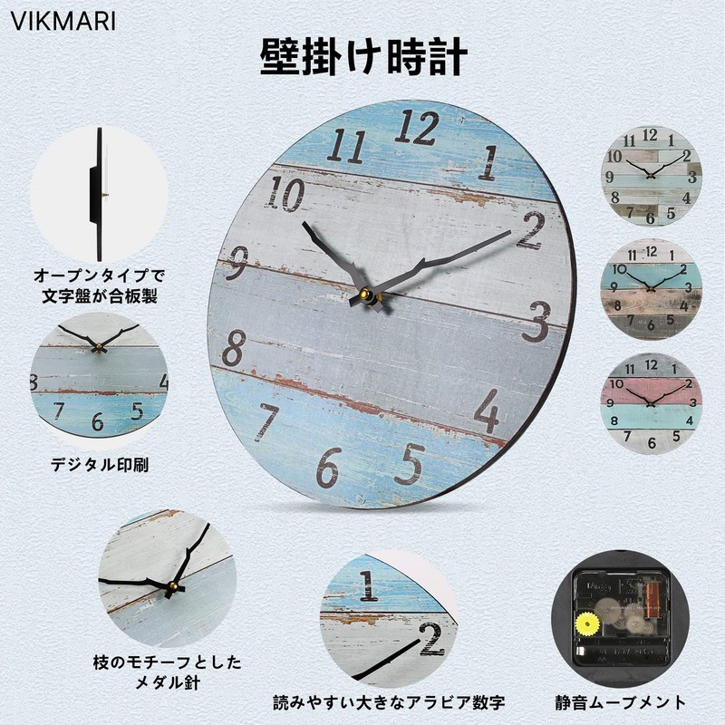 VIKMARI Antique Style Wall Clock, Wood Grain Dial, Retro Branch Point, Colorf...