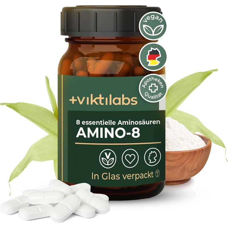 VIKTILABS - AMINO 8 | Aminosäuren Komplex hochdosiert - 998mg pro Pressling | EAA Vegan | Alle 8 essentielle Aminosäuren (L-Tryptophan, l-Lysin ...) |100% natürliche Inhaltsstoffe | 3x 150 Tabletten