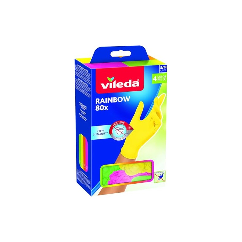 Vileda Rainbow Multi-Purpose Gloves, Nitrile, Multicoloured, S/M (Pack of 80), 80