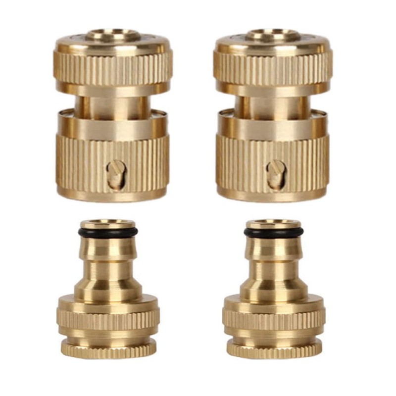 ViLiyDuo 4 Piece Brass Hose Connector Set, Brass Quick Coupling, 2 Hose Couplings, 1/2 Inch, 2 Tap Connector Adaptors, for Car Wash and Hose Connection