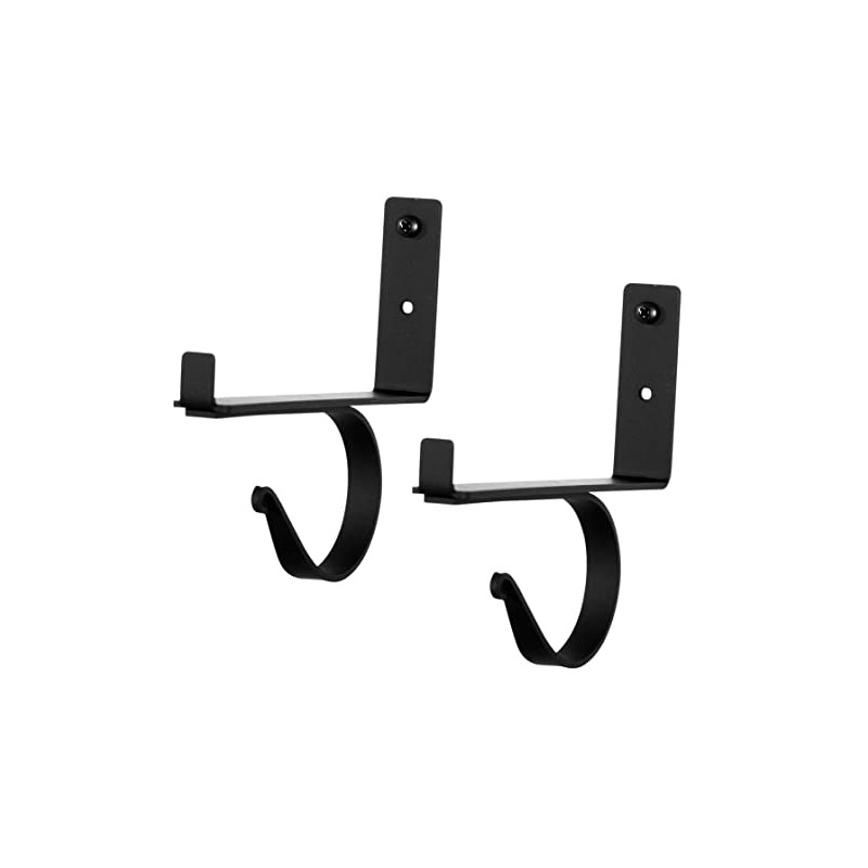 - Showcase a dull window treatment with these stylish handcrafted curtain shelf brackets. The multipurpose curtain shelf brackets holds not only a curtain rod and but a shelf as well for which you can exhibit photos, candles, or mementos. Proudly made in the USA of high-quality, durable wrought iron, the brackets' matte black, satin-smooth finish is powder-coated for durability.