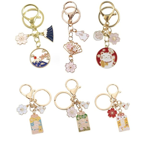 [villageriver] Japanese Souvenir Keychain for Foreigners, Mt. Fuji, Cherry Blossoms, Maneki Neko, Set of 6 in total, S