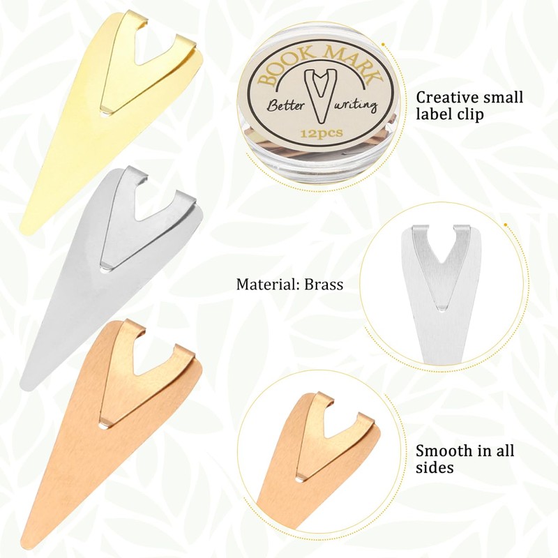 VILLCASE 12pcs Book Dart Metal Bookmarks, Small Book Line Marker Page Marker Book Marker Clip with Storage Box for Reading Teachers Students Book Lovers