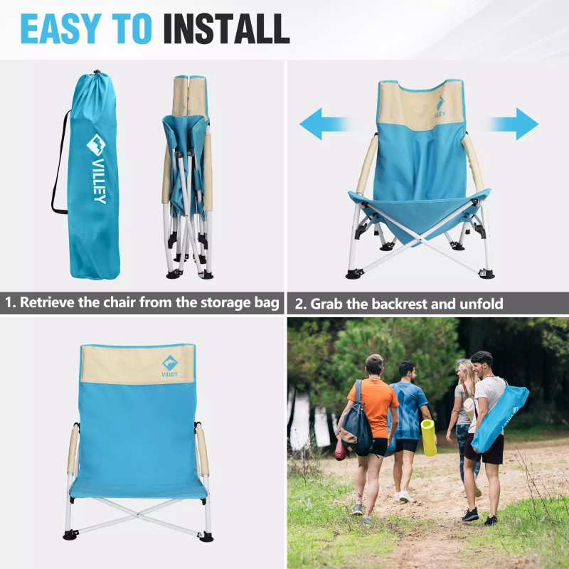 VILLEY Beach Camping Chair, Low Sling Outdoor Portable Lightweight