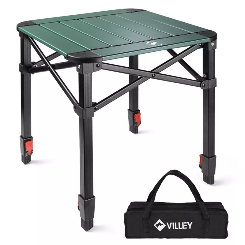 VILLEY Folding Camping Square Table with Carry Bag, Lightweight Aluminum Adjustable Square Table for Outdoor, Camping, Picnic, Backyards, BBQ (S)
