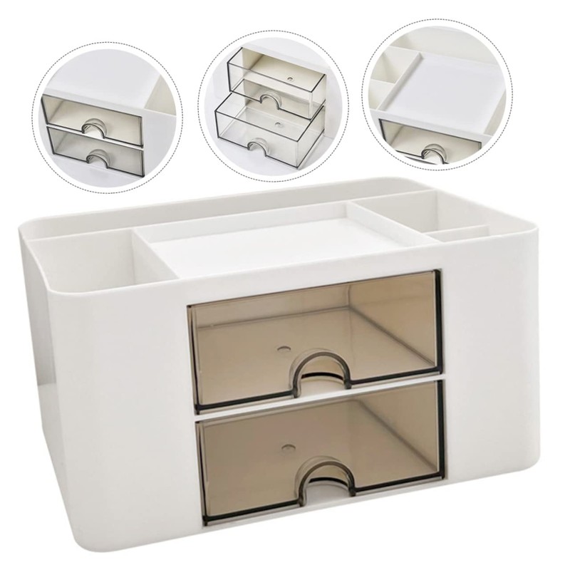 VILLFUL Drawer Organizer Box for Desk Multifunctional Stationery Storage Container Sturdy Plastic for Office and Bedroom Use 3-Compartment Design