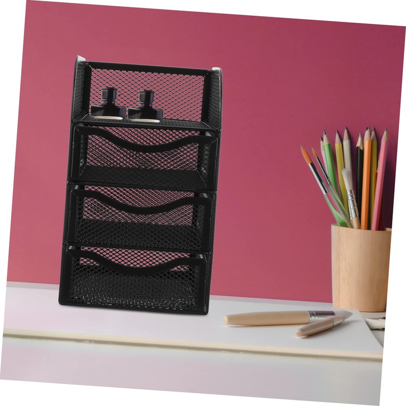 • Mesh desk file organizer-- it can store various items, such as phone, pens, pencils, erasers, headphones, cutlery, etc.
