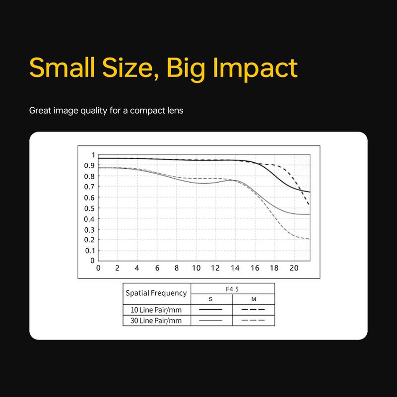 Impressive sharpness and performance from center to edge, ensuring stunning visual clarity at F4.5, no matter the scene.