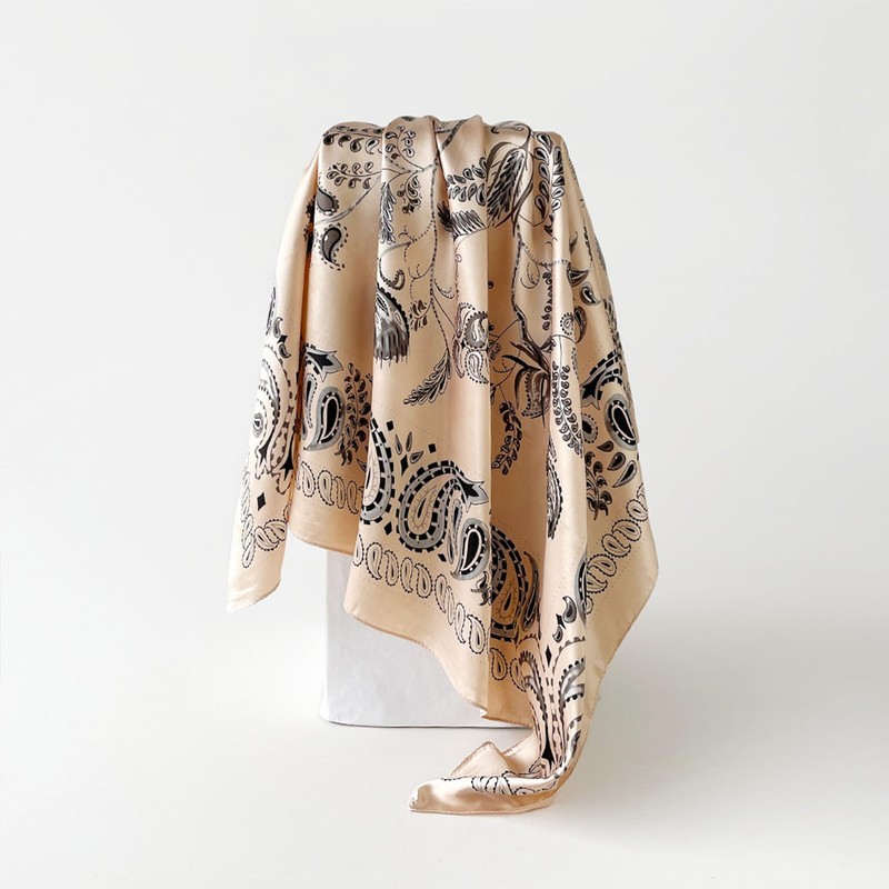 - MAIN FEATURES: 35''square size,large enough to wrap your hair to sleep at night,It is about 2.47 OZ (70g), lightweight, gentle and graceful. The silk scarf as a variety of embellishments, highlighting the unique charm of women