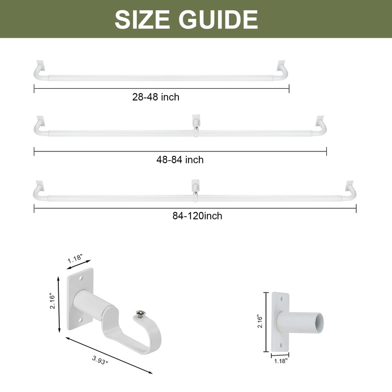 - Adjustable Length: Equipped with 2pcs wrap around rods and 1pc fixed rods, Vimayta 1 inch diameter curtain rods is suitable for 28 to 48 inches window, you are able to custom the rods length to match your window.