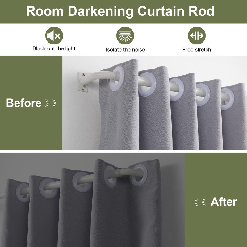 - Provides 100% Blackout: Wrap-around design offers curved edges to make room darkening curtains function properly. The white curtain rod is nice for privacy and keeping the sun out at the corners.