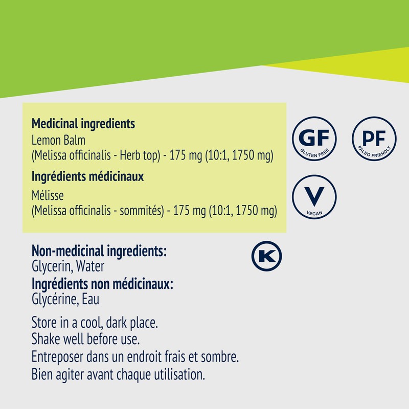 - PEACE OF MIND CLEAN. Vimergy is triple third party verified, for your peace of mind. Our lemon balm liquid is a clean formula with only 3 ingredients, designed to work well for everyone. This liquid natural supplement contains no citric acid, maltodextrin, soy, corn, alcohol, sugar, colors, flavors, or preservatives. It's USDA Certified organic, non-GMO, gluten-free, alcohol-free, and paleo-friendly.