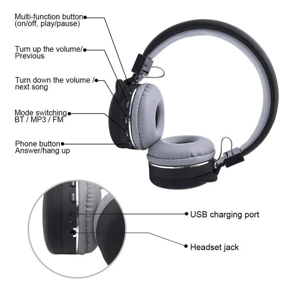 - AUDÍFONOS BLUETOOTH INALAMBRICOS CON RADIO FM Y LECTOR MEMORIA