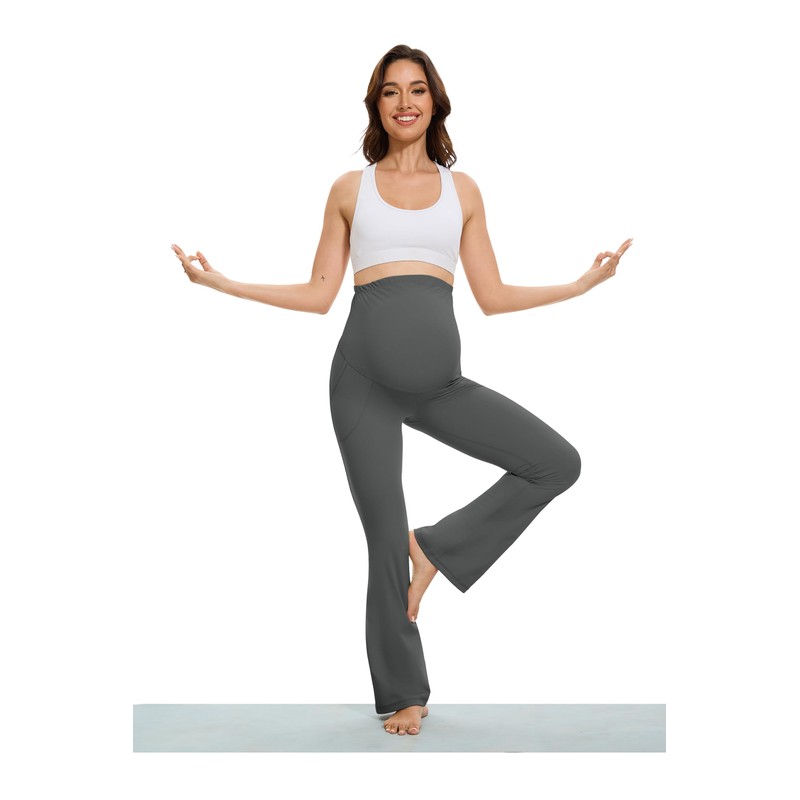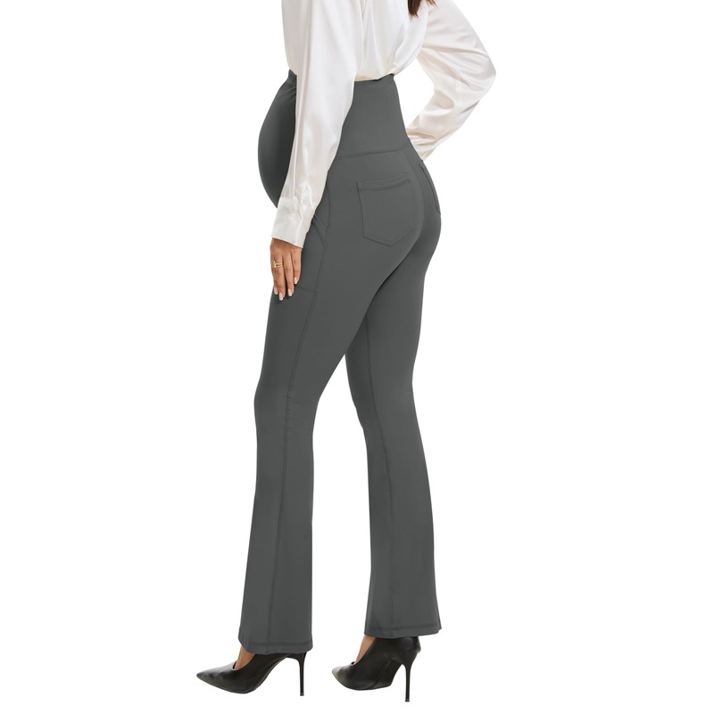 VIMPEP Smooth Feeling Flare Maternity Leggings Over The Belly Pregnancy Bootcut Yoga Pants Petite/Regular with Pockets 303 29 Dark Grey S