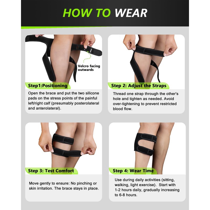 - Smart Use Guidelines for Best Results: This brace provides relief from symptoms—not a cure for sciatica. For best results, apply it to the correct pressure point on the outer calf muscle. Start with no more than 2 hours of use to get used to it, then wear as needed for continued relief.