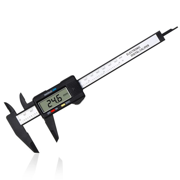 - Material: The digital calipers are made of a durable, lightweight and corrosion-resistant plastic carbon fibre composite. This lightweight and compact, scratch-resistant gauge is easy to use and durable. The lightweight construction provides excellent protection against the drift of the plastic body due to shocks of the hand and provides a good balance between sliding length and value stability. The edges of the digital calipers are not sharp enough to cut people or objects.