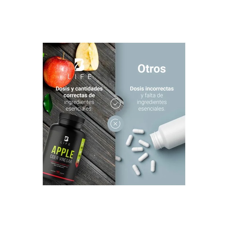 Vinagre De Manzana 180 Cápsulas De 500mg. B Life Sin Sabor