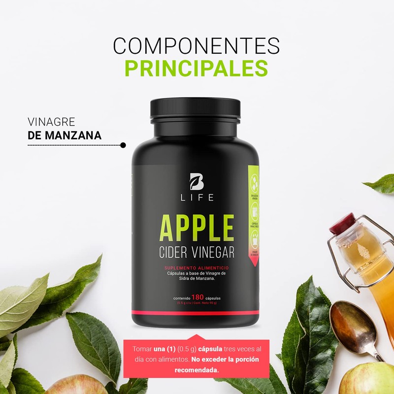 Vinagre de Manzana 500 mg 180 Cápsulas. Ingredientes naturales. Apple Cider Vinager B Life.
