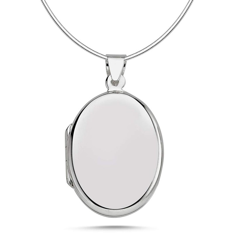 Vinani 2AMB-S Oval Locket Shiny with Snake Chain 925 Sterling Silver Pendant, Sterling Silver