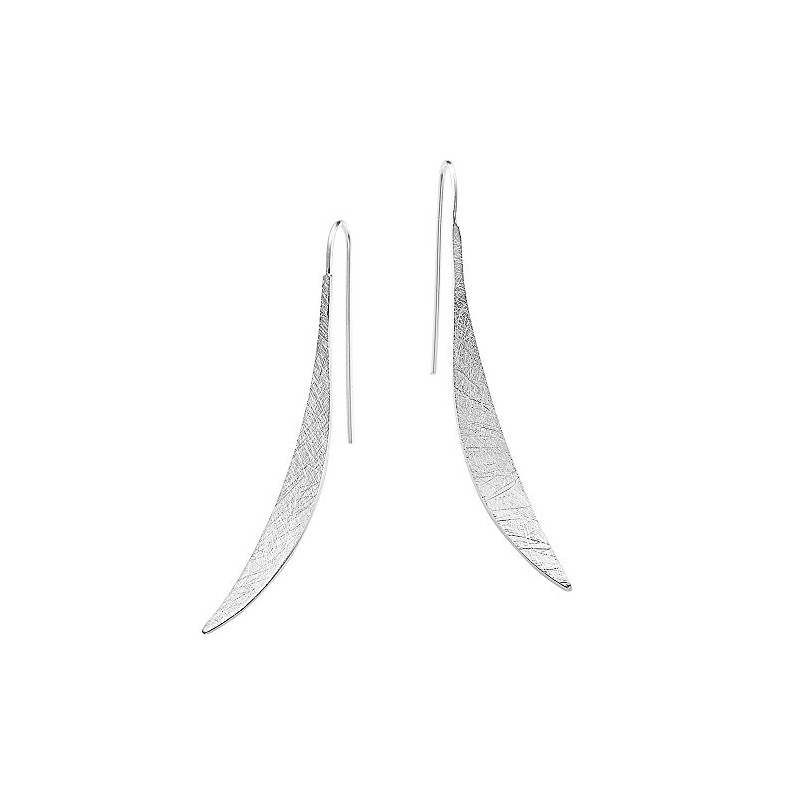 Vinani 2OHA Slim Long Brushed Leaf 925 Sterling Silver Earrings, Sterling Silver, No Gemstone