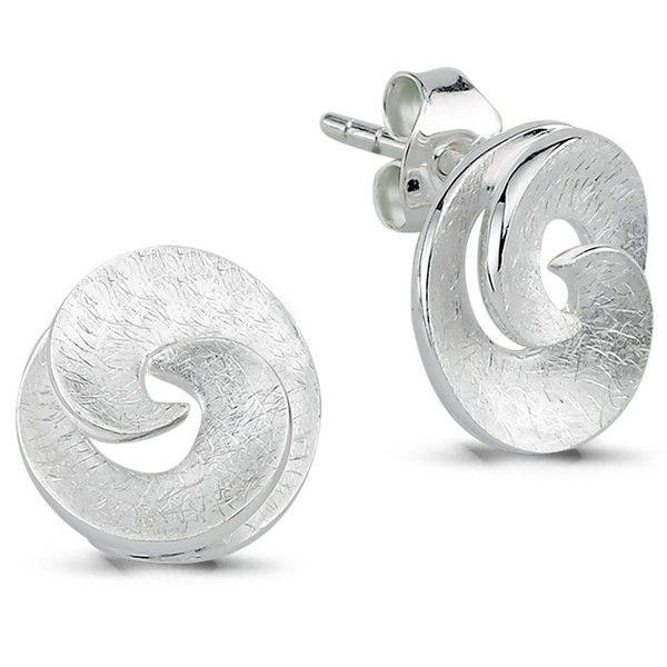 Vinani 2OSP Spiral Stud Earrings Small Round Open Playful Brushed Sterling Silver 925 Earrings, Sterling Silver, No Gemstone