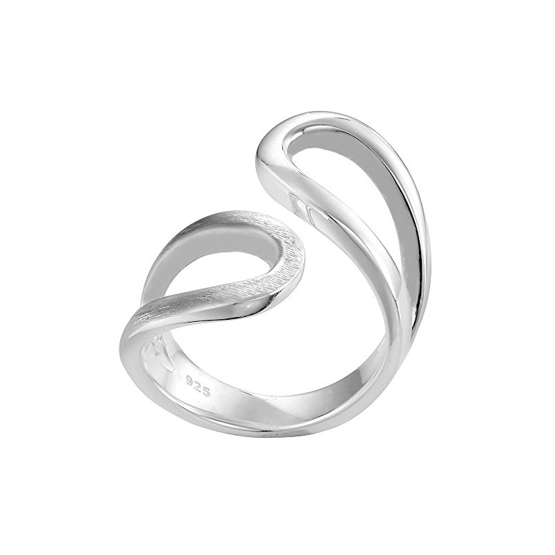 Vinani 2RSL Women's Ring Loops Design Curved Brushed Shiny Solid Open 925 Sterling Silver, Precious metal, No Gemstone