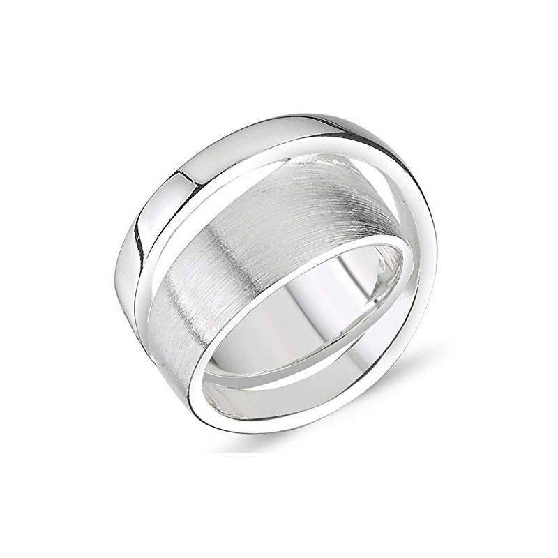 - Refined design: this solid ring made of pure 925 sterling silver refines the elaboration of a narrower, shiny ring that extends diagonally over the wider, frosted ring. However, as this ring is made from one piece, it has a flat bottom and thus offers a high level of comfort. The play of different surfaces underlines its modern and special look.