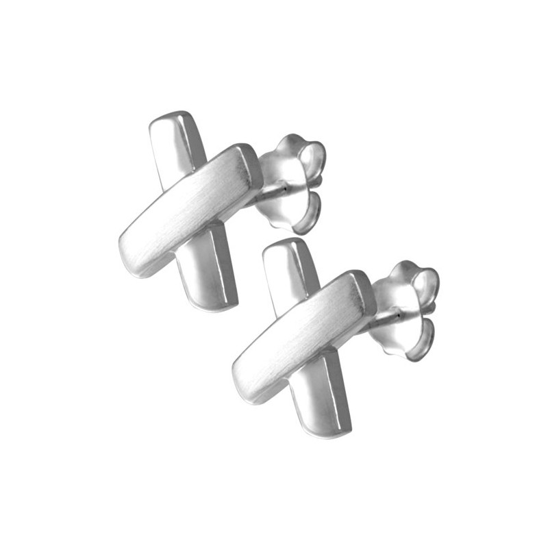 Vinani OWX Stud Earrings Cross Matt Shiny 925 Sterling Silver, Sterling Silver, No Gemstone