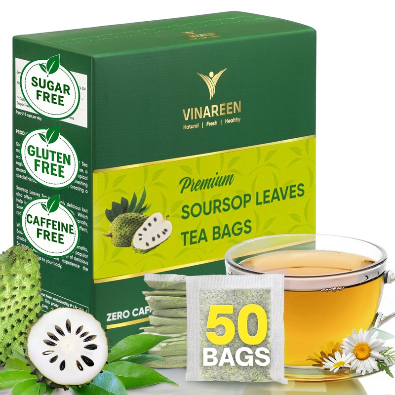 VINAREEN Soursop Leaves, 50 Count – Sugar-Free, Caffeine-Free, Gluten-Free Sour Sop Leaves for Wellness – Soursop Bitters Liquid Serving – Convenient Tea Bags