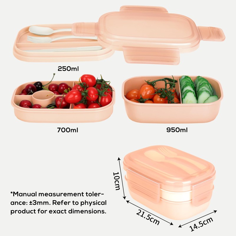 - Large volume and practically divided: the bento box from VINATO offers 1900 ml capacity (21.5 x 14.5 x 10 cm) with three fully separable levels. Each tier has divided dividers for optimal food organization. Includes cutlery set (spoon, fork, knife). Ideal as a lunch box adult or family meal.