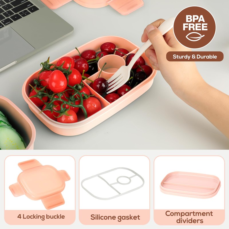 - Reliable leakage protection: the lunch box with compartments combines silicone seal with 4 safety locks. Even when moving, the contents remain safely contained (not recommended for liquids). The leak-proof lunch box prevents leaks in bags or backpacks.