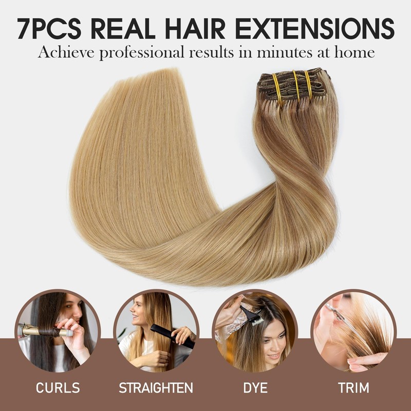 - Clip in Hair Extensions: VINBAO human hair extensions clip ins are made of remy human hair, can be dyed, curled and restyled, soft like your own natural hair, styles easily without tangling or shedding. Our clip in human hair extensions blend well with your own hair