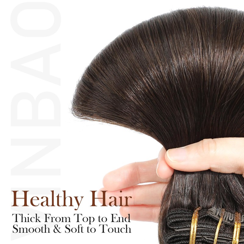 • Hair extensions real human hair: VINBAO clip in hair extensions are made of 100% real human hair, natural and healthy, our clip in human hair extensions blend well with your own hair, styles easily without tangling or shedding