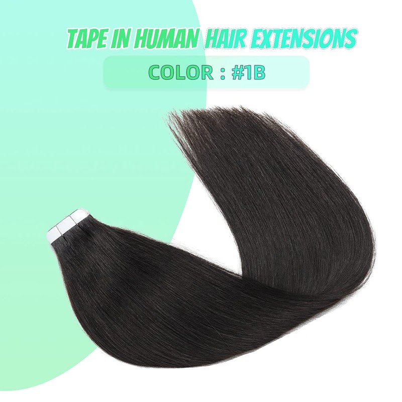 VINBAO Human Hair Extensions Tape in Hair Extensions 16 Inch Natural Black Hair Extensions for Fashion Women Double Weft 50 Gram 20Pcs Long Straight Real Human Hair Extensions Tape in (tape#1B-16Inch)