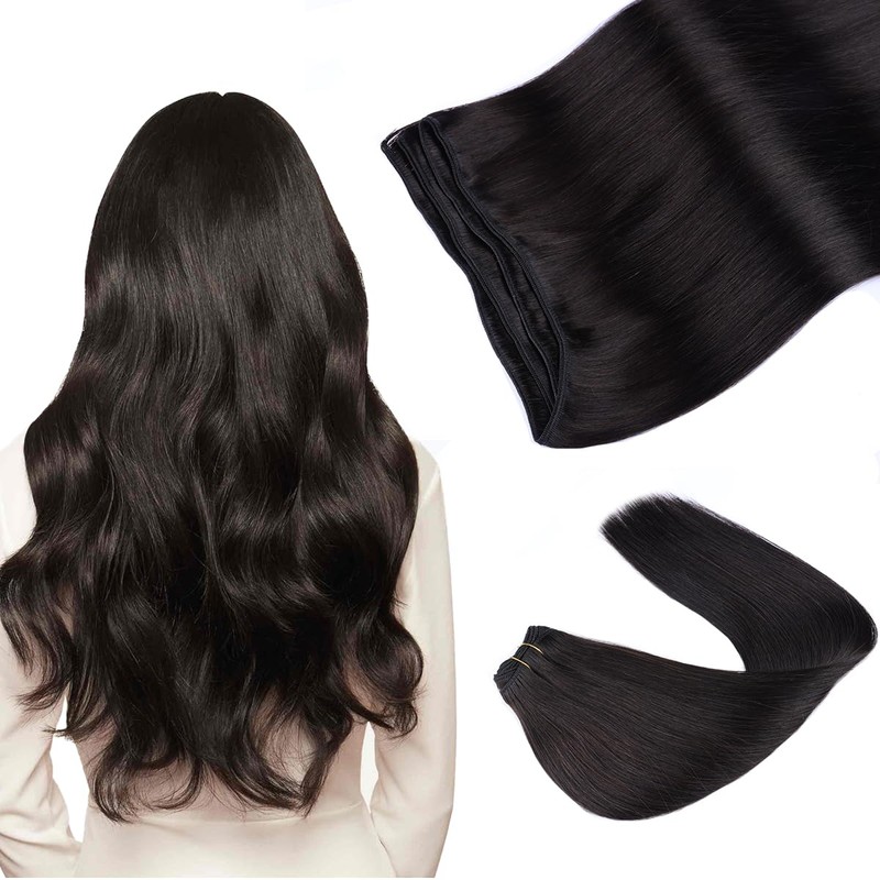 VINBAO Sew in Human Hair Extensions Natural Black Hair Extensions Remy Silk Straight Human Hair Extensions 16inch 80g Sew in Bundles Human Hair Extensions (weft#1B-16inch)