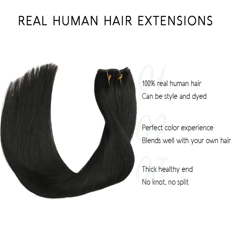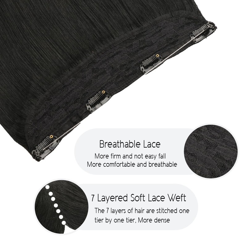 VINBAO Wire Human Hair Extensions, 22 inch 85g Color #1 Jet Black Wire Human Hair Extensions Invisible Fish Line Straight Extension Cheveux Humain (wire#1-22inch)
