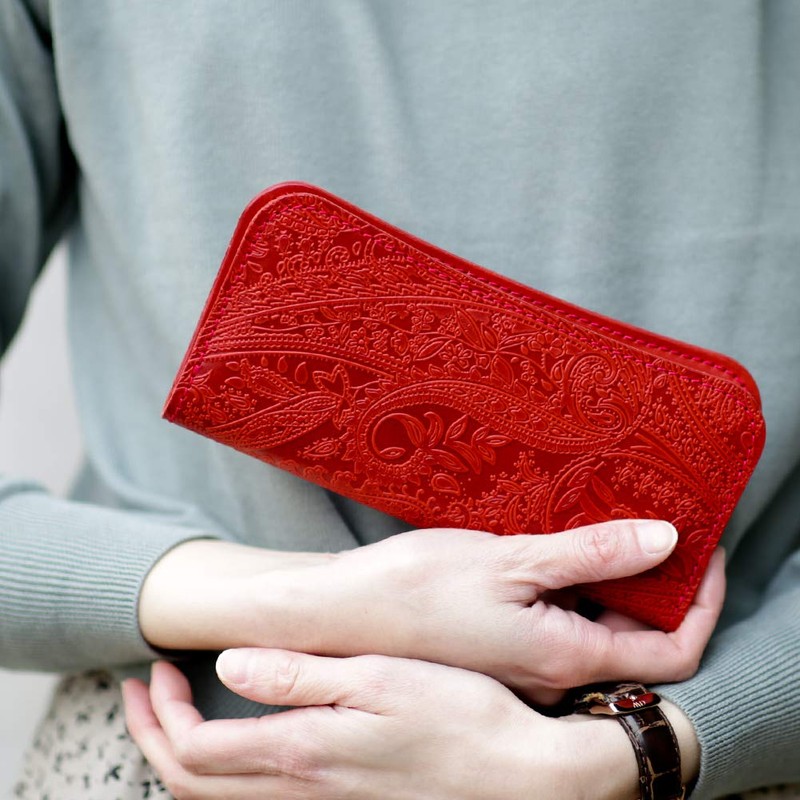 Vincent Crafted, Tochigi Leather, Paisley Long Wallet, NAZARIO Long Wallet, Women's, Men's, Genuine Leather, Wallet, Made in Japan, red