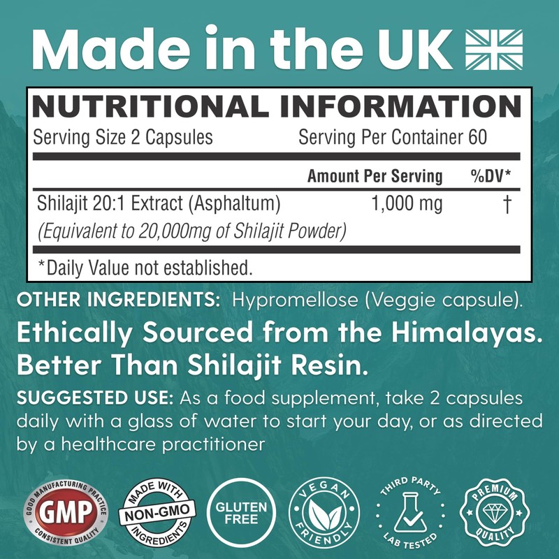 - Pure Excellence, No Compromise: - Vinco Shilajit Supplement epitomizes premium quality through non-chemical extraction. Free from fillers, additives, and hidden ingredients, our shilajit is conveniently encapsulated in 120 capsules, providing a precise 60-day serving. Unleash the potential of your day with Vinco Shilajit Supplement from the GilgitBaltistan Mountains – your ultimate, capsule-based, filler-free.