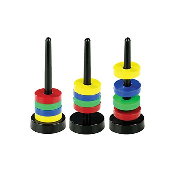 - Various ring magnets: the set contains four different coloured ring magnets with a diameter of 32 mm. These can be stacked on the stand.