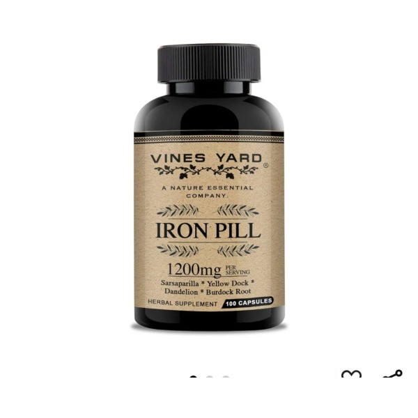 The Vines Yard Iron Pill 1200 Mg is a natural and alternative remedy in capsule form. This herbal remedy is designed to promote health and beauty by providing a high concentration of iron to support overall well-being. With its convenient capsule form, this product allows for easy consumption and provides a convenient way to supplement one's diet with essential nutrients. includes sarsaparilla, yellow dock, dandelion, and burdock root