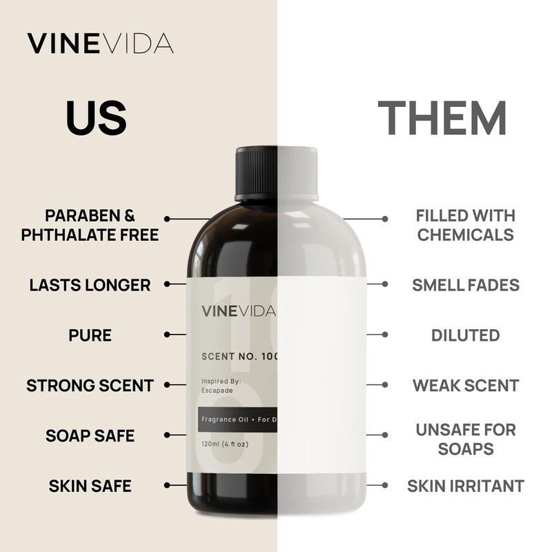 • NATURAL - Our scents and fragrances are skin-safe (when diluted) using pure, natural, and raw ingredients. All VINEVIDA products are vegan, free of phthalates, parabens, and other potentially dangerous chemicals.