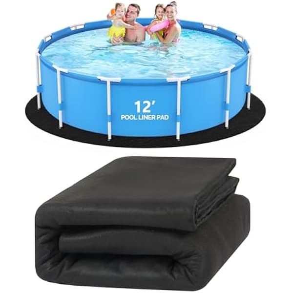 VINGLI 12 FT Round Pool Liner Pad for Above Ground Swimming Pools, Extra Thick Swimming Pool Liner, Prevent Punctures, Weed Barrier, Black