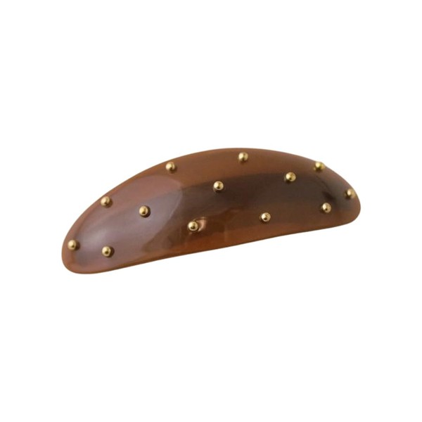 - This barrette features a sophisticated design with oval shape and studded accents. Simple yet elegant sheen gives an elegant look in any occasion. This item can be used for a wide range of occasions, from daily to formal occasions