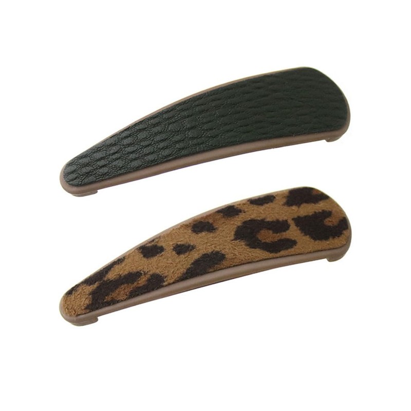 - Set of 2 patch clips for a fun way to choose your favorite combination. The faux leather or suede texture gives it an adult elegance and is accented with a leopard pattern. You can wear it casually or elegantly according to your style