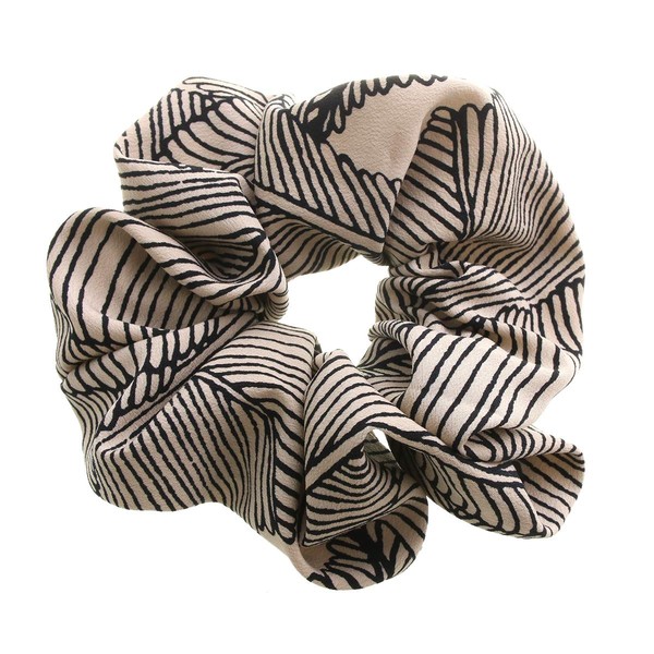 VINGTAINE HS-127 Botanical Pattern Scrunchie, Simple, Casual, Daily Use, Chiffon, Hair Accessories, biege