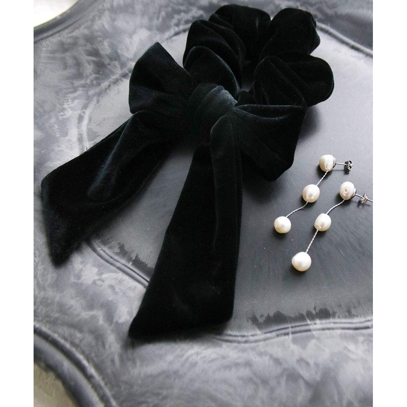 VINGTAINE HS-148 Ribbon Velour Scrunchie Removable 2-Way Arrangement Simple Hair Accessory