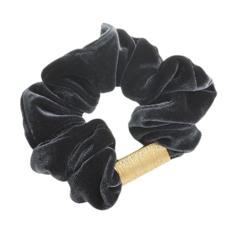 VingTAINE HS-92 Velour Scrunchie Hair Accessory with Plate, gold × gray