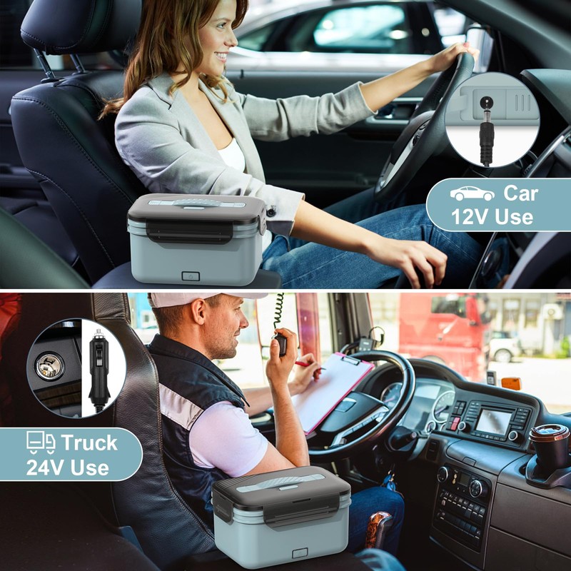 - 4-In-1 Electric Lunch Box: Our food warmer lunch box supports multiple power options: 110V/220V for home/office use, 12V for the car, and 24V for trucks. It's the perfect companion to enjoy warm home-cooked food while on the go, whether in a car, truck, or at work. Ideal for office employees, building workers, car/truck drivers, and more.