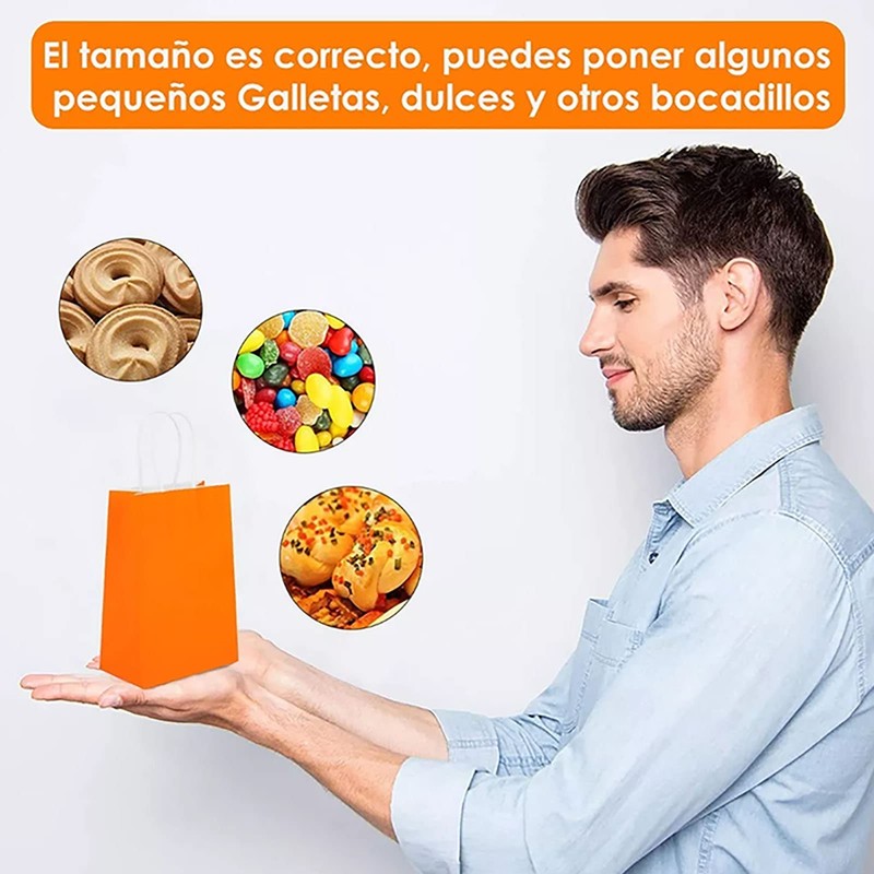 - Color vibrante: Bolsas papel kraft, las bolsas de con asas, paquete de 24 en varios colores, incluyendo rojo brillante, morado oscuro, amarillo, verde fruta, naranja, azul real. Las bolsas de de arcoíris son brillantes y coloridas como el arcoíris.