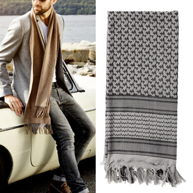 VINGVO Bufanda de Algodón, Gris, 110x110 Cm, Bufanda del Desierto, Cómoda para la Piel para Viajeros (110 * 110CM)